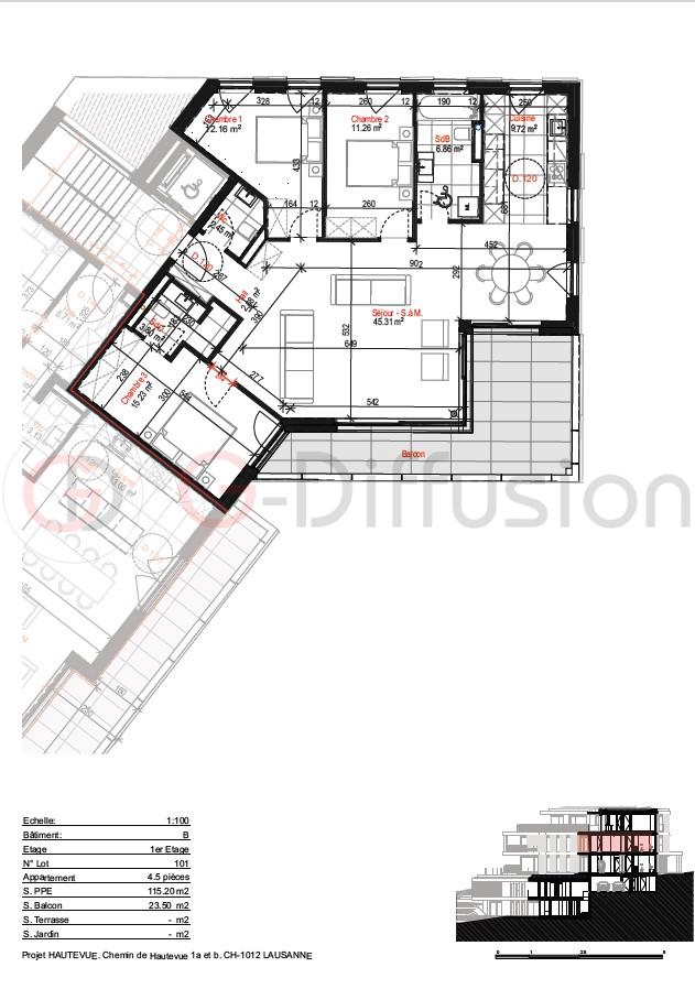 Magnifique appartement de 115 m2 sur plan à Lausanne