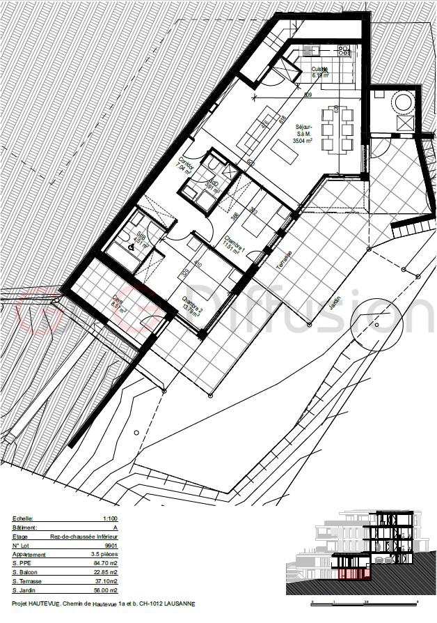 • Appartement de 3.5 pièces au Rez inferieur, construit en 2017.