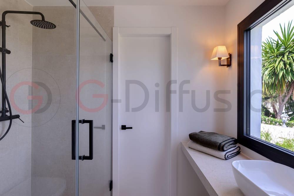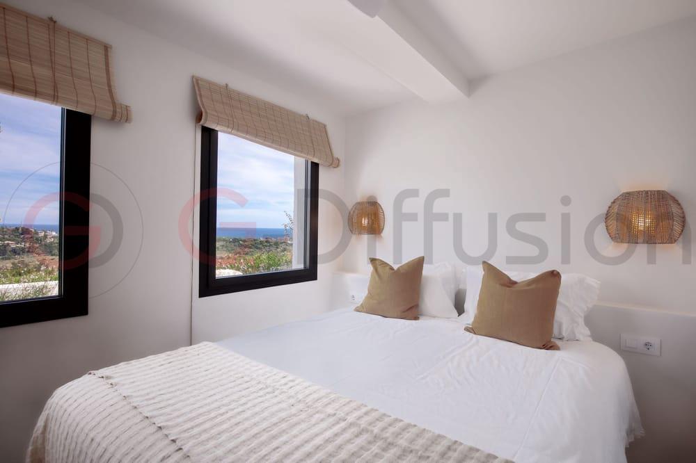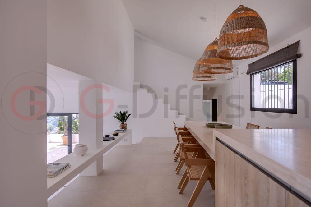 Distributed over three levels, the villa is fully furnished, ready to move in and welcome its new owners. Its contemporary minimalist style, wrapped in the magic of a cosy feeling of wellbeing, spread through every room, from the spacious and bright living room connected with an exquisite open plan kitchen and the double terrace, to each of the four bedrooms, with their three en-suite bathrooms and a guest toilet.