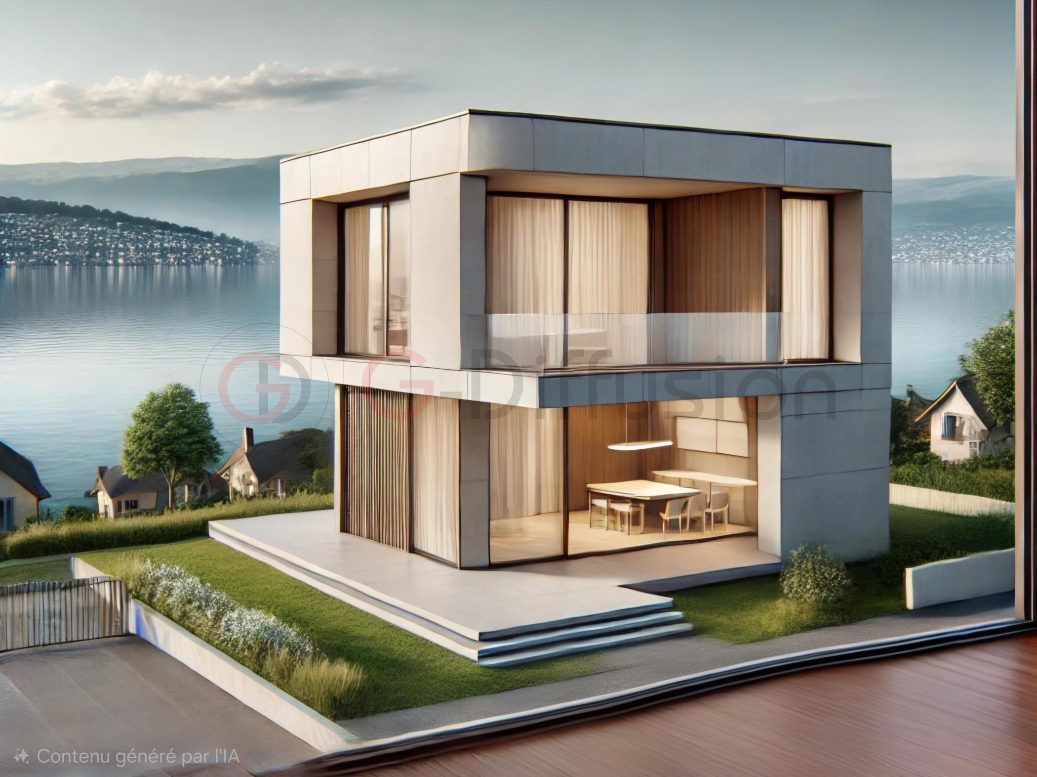 Splendide maison lumineuse avec orientation sud ouest, située dans un havre de paix verdoyant avec une tranquillité absolue et à proximité du lac Léman, écoles, garderies et commerces et du centre-ville.